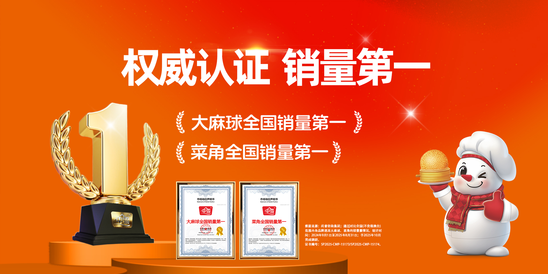 重磅喜報(bào) | 中雪食品實(shí)力斬獲大麻球、菜角“全國(guó)銷(xiāo)量第 一 ”認(rèn)證!